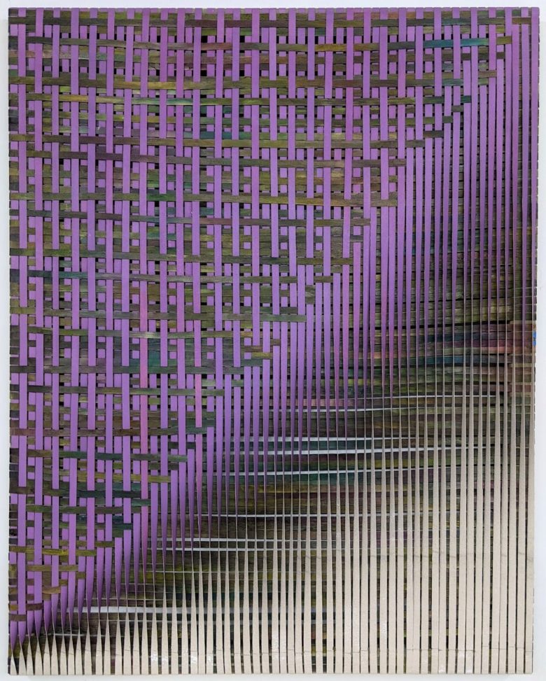 Image: Eric Wall, Cutbank Violet, Oil & Acrylic on Hand-cut Woven Canvases 44 x 30 inches 2025