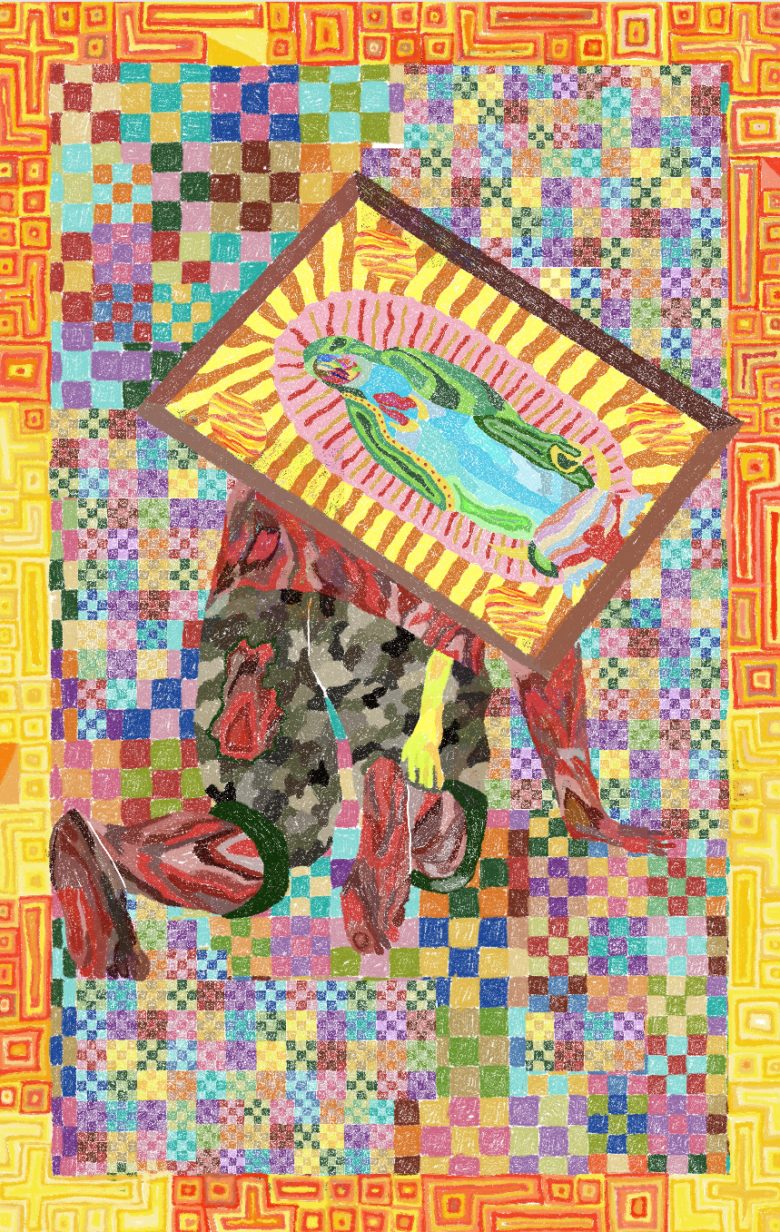 Armando Román is an interdisciplinary artist living and working in the Midwest. He received his BFA in Studio Arts from Denison University and his MFA in Visual Arts from The Ohio State University. His drawings traverse themes of religion, homosexuality, community, and the self. The Mexican landscape, both cultural and literal, is of particular interest to him. He creates work to better understand his own relationship with Mexico, which is simultaneously familiar and foreign to him. Familiar, in that countless stories have been retold to him of this place, where his mother and father were born. Foreign, in that he has no permanent relationship with it. Hybridization, juxtaposition, and integration are used in his practice as tools of resistance.