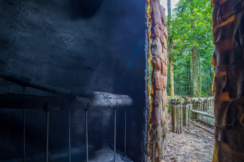 Image: Amber Ginsburg, Sara Black and Charlie Vinz, Le Musée du Grand Dehors (The Museum of the Great Outdoors), 2018, Thailand Biennale, Than Bok Koranee National Forest, View from the Carbon interior, including the rubber tree and the outside Park/Museum.