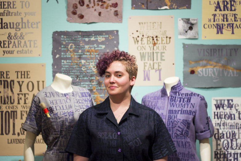 Angela Davis Fegan was born and raised on Chicago’s South side. She is the co-owner of Too Much Press in Bridgeport and vice president of the Chicago Printers’ Guild. She received her BFA in Fine Arts from New York’s Parsons School of Design and her MFA in Interdisciplinary Book and Paper Arts from Columbia College Chicago. Her lavender menace poster project has been written up by The Offing (LA Review of Books), Hyperallergic, Chicago Magazine, Pop Sugar, Go Magazine, the Chicago Reader, and Newcity.