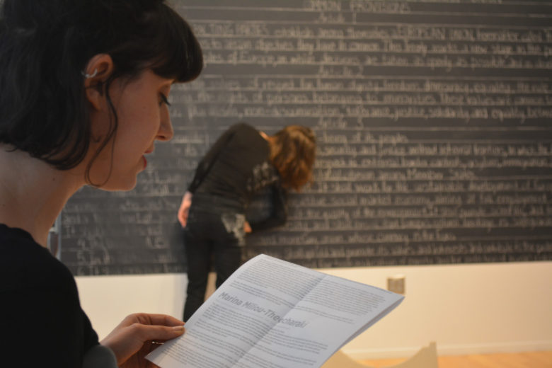 Born in Athens, Greece, Marina Miliou-Theocharaki is an interdisciplinary artist, writer, and dancer. In her practice, definitions of culture and ethnic identity are silently confronted. The spatial and conceptual drift between fictional and socio-politically charged geographies that push her to delicately investigate definitions and compositional arrangements of distance, borders and, non-belonging. Her work has been exhibited in venues including the Den Theater Chicago; Dfbrl8tr Performance Art Gallery, Chicago; Chicago Home Theater Festival; Woman Made Gallery; Fancy House Gallery, Chicago; the group exhibition Words we Live By, curated by Molar Productions; as well as the Cook County Jail, Chicago. Miliou-Theocharaki was a member of the Chicago-based performance group, Collective Cleaners. They performed in various venues including the MCA Chicago and the Jane Adams Hull-House Museum. Miliou-Theocharaki was awarded the 2015 BFA/Post-Baccalaureate Fellowship from the School of the Art Institute of Chicago as well as the 2014 George Roedern Undergraduate Award in Visual & Critical Studies. She currently holds a position as a Curatorial Research Assistant at the Mary and Leigh Block Museum of Art, Northwestern University, Evanston, IL. Learn more about Marina Miliou-Theocharaki’s HATCH exhibitions Tracing the Invisible and Being, enough.